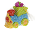 im Netz verpackt,Förmchen, Schaufel, Sieb, Harke und Eimerzum Zug zusammenbaubar