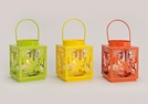 Sechseckige Metall-Laterne mit Kette & farbwechselnden LED ca. 11 x 8 cm, 4-fach sortiert, für 3 Micro Batterien (AAA), 12 Stück im Display