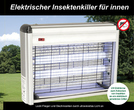 im Farbkarton verpackt, lockt Fliegen und Stechinsekten durch ultraviolettes UV-Licht an, für den Innenbereich, schwarze Kunststoff- und Metallgitter-Konstruktion, Steckdosen-Ansch ...
