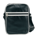 Reporter bag in matt finish PVC with white trimming and piping. Front pocket closed by horizontal zipper. Adjustable shoulder strap.