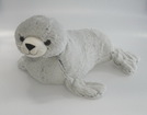 Seehund, schwarz-weiß gespitztem Softflauschplüsch. Größe: Ca. 40 cm.