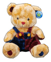 sitzender Kuschelbär mit Latzhose, 30cm hoch, kuschelig weich, ein knuddeliger Freund für die Kleinsten, bei 30 Grad waschbar