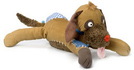 Harry, der Hund ist 65 cm lang aus dunkelbraunem Cord mit einer kuscheligen Stoffaplikation auf dem Bauch.Er hat einen flauschigen Körper mit bunten Stoffapplikationen und ein lust ...