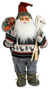 Grösse: 60cm, grau-weiss-rote Bekleidung, Pullover im nordischen Streifen-Elch-Design, Hose mit pelzähnlicher Verzierung, Mütze, wuscheliger Bart, Skier in der Hand, Sack auf dem ...