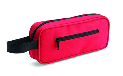 Stifteetui 'School' aus 600D Polyester, inklusive Handschlaufe und Reissverschluss-Vortasche, Farbe: Rot, Groesse: 21 x 8 x 4 cm