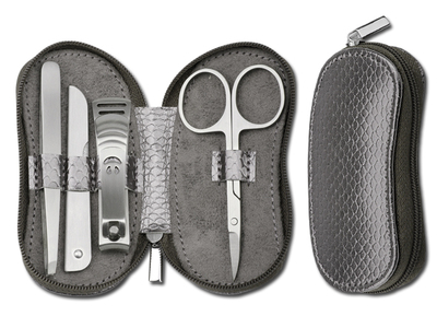 4-teilige Manikuere aus Edelstahl im Etui aus Kunstleder.