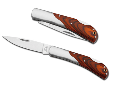 Klappmesser aus Edelstahl und Holz mit Sicherung.