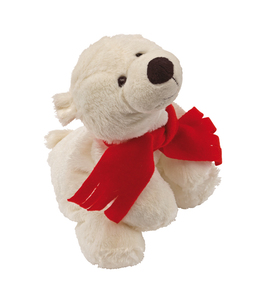 Pluesch-Eisbaer "Lars" : mit weichem Fell und Schal zum Bedrucken (separat gepackt), rot, weiss, 10,5 x 22 x 24 cm