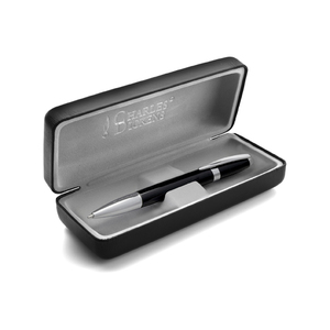 Charles Dickens Dreh-Kugelschreiber 'Wakefield' aus Metall, Geschenk-Etui aus PU, Metall-Clip- und Zierring, schwarze Mine, Farbe: Schwarz, Groesse: 16 x 6,5 x 4,1 cm