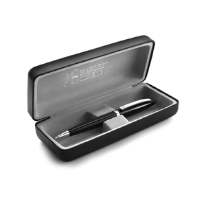 Charles Dickens Kugelschreiber 'Sheffield' aus Metall, Drehfunktion, Metall-Clip, Geschenk-Etui aus PU, schwarze Mine, Farbe: Schwarz, Groesse: 16 x 6,5 x 4,2 cm