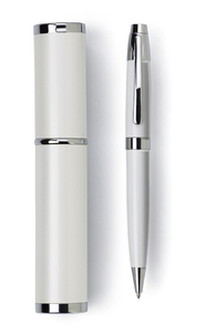 Kugelschreiber 'Bi Daddy' aus Metall, Drehfunktion, Metall-Clip, schwarze Mine, inklusive XXL-Etui, Farbe: Weiss, Groesse: Ø 2,8 x 15 cm