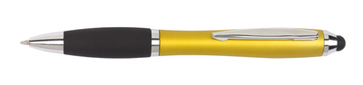 Kugelschreiber "Sway Touch" : mit taillierter Schaftform, Drehmechanismus, gummierter Griffzone und Touchscreen-Spitze am Ende des Stiftes, blauschreibend, goldgelb, 13,5 cm