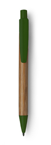 Kugelschreiber 'Calgary' aus Bambus, Applikationen aus Kunststoff, blaue Mine, Farbe: Gruen, Groesse: Ø 1,1 x 14,2 cm