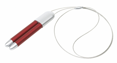 Schreibset "Gemini" : bestehend aus Kugelschreiber und Taschenlampe, in magnetischer Verschlusskappe an Drahtumhaengeband mit Magnetverschluss, Kuli mit Grossraummine, schwarzschreibend, burgund, silber, 11,9 x 2,3 x 1 cm