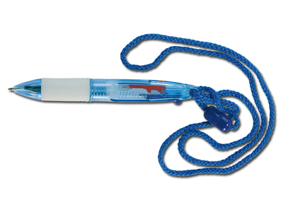| Produktname: | Kunststoffkugelschreiber 2 in 1 mit Textilhalsbandund Gummigrip. Mit blau- und rotschreibender Mine. |