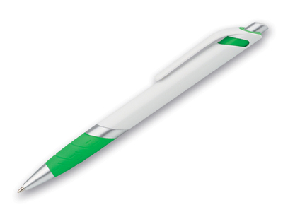 Kunststoffkugelschreiber mit Gummigripmit blauschreibender Mine.