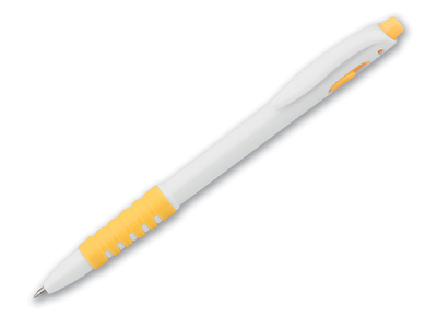 Kunststoffkugelschreiber mit Gummigripund blauschreibender Mine.