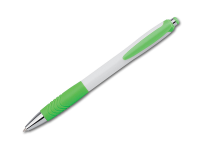 Kunststoffkugelschreiber mit Gummigripund blauschreibender Mine.