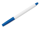 Kunststoffkugelschreiber mit Metallclip und blauschreibender Mine.