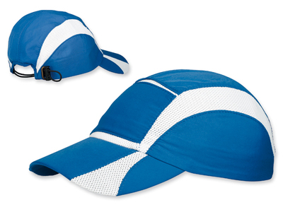 Baseballkappe aus Polyester mit Gummiband, atmungsaktiv.