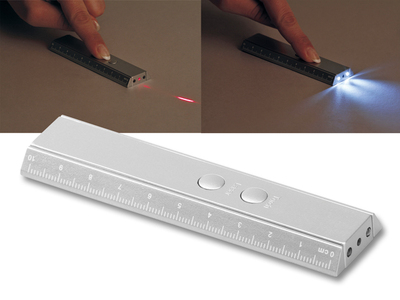 | Produktname: | 2 LED Taschenlampe aus Kunststoff mit Laser-Pointer und Lineal (10 cm/4"). Incl. Knopfbatterien (2x). |
