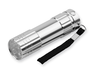 9 LED Taschenlampe aus Metall mit Schlaufe. Ohne Batterien AAA (3x).