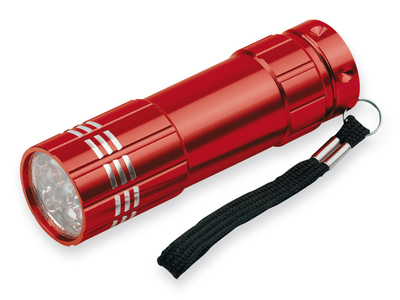 Produktname:9 LED Taschenlampe aus Metall mit Schlaufe. Ohne Batterien AAA (3x).