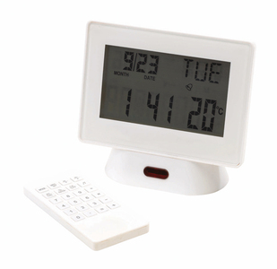 Digitaluhr "Big count" mit Taschenrechner und Infrarot-Fernbedienung: Datumsanzeige, Alarmfunktion (Wecker mit 9 Melodien), Countdownfunktion, Temperaturanzeige (ºC und ºF), blaues Hintergrundlicht, Fernbedienung mit ca. 5m-Reichweite und 2 weissen LED, alle Funktionen mit der Fernbedienung anwaehl- und einstellbar, weiss, 12,5 x 5,5 x 11,5 cm