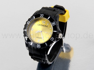 Produktname:Silikonuhr mit schwarzem Armband und gelbem Ziffer