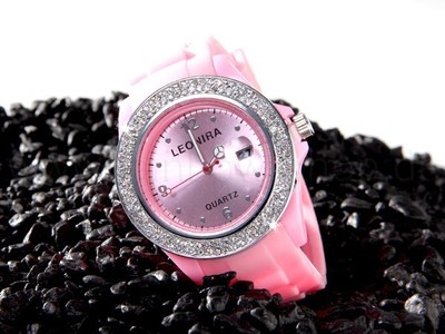 pink Silikon Strass Silikonuhr Uhr Analoguhr Watch
