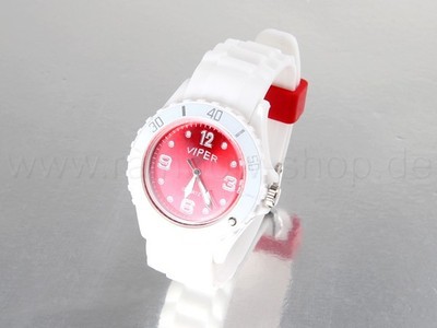 weiss mit rotem Ziffernblatt Viper Silikonuhr smal
