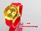 Die moderne Damen und Herren Armbanduhr aus Silikon. Sie suchen eine preiswerte Uhr, welche zu allen möglichen Outfits passt? Eine poppige Uhr in vielen verschiedenen Farben? Unterschiedliche Varianten respektive Ausführungen der Armbanduhren für Damen, Herren sowie Kinder mit beliebter Blink Funktion beziehungsweise Leucht Funktion durch LED Beleuchtung? Wir bieten eine reichhaltige Auswahl von Silikon Armbanduhren in Ihrem Grosshandel. Die Trend Marke VIPER wie auch LEONIRA Silikonuhren in der Big Face oder Small Face Variante als Armbanduhren in Ihrem Grosshandel in verschiedenen Farben. Wir bieten auch Silikon Uhren im Grosshandel als Armbanduhren durch Strass Steine verziert an. Unsere Silikon Uhren sind in Trendfarben hergestellt. Jene günstigen Preise sind im Silikonuhren Grosshandel sowie für Wiederverkäufer attraktiv. Entscheiden Sie sich für unsere Herren oder Damen Silikon Armbanduhren und begeistern Sie Ihre Kunden. Ihre Silikon Uhr lässt sich mit Ihrem eigenen Logo versehen. Verschiedene Farben machen diese Silikon Uhr zu einem Accessoire, welches zu nahezu jedem Outfit getragen werden kann. Armbanduhren aus Silikon für Damen, Herren auch Kinder mit Blink-, Leucht-, LED-Funktion. Unsere modischen Armbanduhren bekommt man jetzt im Grosshandel. Dieser Artikel ist technisch einwandfrei. Vereinzelt können lagerzeitbedingt entladene Batterien vorkommen. Da es sich bei einer Batterie um ein technisch bedingtes Verschleißteil handelt, begründet dies keinen Mangel am Artikel. Wir müssen daher Reklamationen wegen möglicherweise entleerten Batterien ablehnen. Wir weisen darauf hin, dass es sich bereits um reduzierte B-Ware handelt.