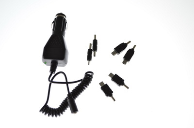 Kfz-Ladegerät für MobiltelefoneKfz-Ladegerät für Mobiltelefone, zum Aufladen von Mobiltelefone über einen Standard-Zigarettenanzünder.Geeignet für Mobiltelefone führender Hersteller:1x NOKIA 2mm Seriev1x NOKIA 3mm Serie2x Micro USB2x mini USBMit 12V und 24V-Anschluss und Mini-USB zum Laden digitaler Geräte.Eingang: DC 12/24V,Ausgang: DC 5V +/- 5%, max. 500mA.Mit 7 verschiedenen Adaptern.Kabellänge ca. 38 cm, dehnbar bis ca 100 cm.Mit roter Funktions-Kontroll-Leuchte.Farbe: schwarzMaterial: ABSVerpackung: Doppelblister