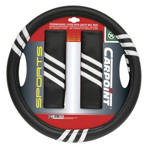 Lenkradbezug + Gurtschoner-Set Für Lenkräder mit einem Durchmesser von 37-39 cmMaterial rutschfester Schaumstoff-PUDesign SportSchwarz/WeißGewicht:0,5kg