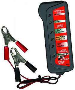 Kfz- Batterie und Lichtmaschinen Tester ''easy''Produktbeschreibung: Zur Kontrolle des Ladezustands Ihrer Autobatterie oder Funktionsüberprüfung der Lichtmaschine. Besonders praktisch: Anschlussleitung mit Batterieklemmen.Maße in mm (BreitexLängexHöhe): 135x240x25Gewicht in Kg: 0,11