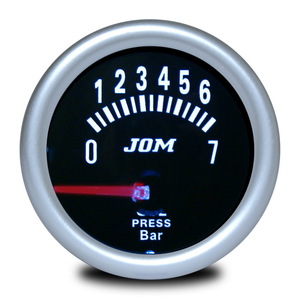 Klassisches Zeigerinstrument.Öldruck von 0-7 Bar. Das Instrumentenglas ist schwarz verspiegelt, das Ziffernblatt wird erst bei Inbetriebnahme sichtbar. Lunette und Gehäuse Aluminum, Einbaumaß Ø 52mm (2)