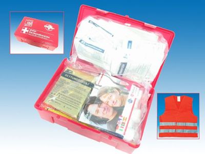 Filmer Verbandkasten DIN 13164 mit Warnweste Perfekte Ordnung für schnellstmögliche Zugriff- Ein Verbandkasten ist durch STVZO in jedem Kraftfahrzeug Pflicht- Dieser nach DIN 13164 bestückte, erfüllt den §35h der STVZO.- Achtung: Verbandkästen haben ein Verfallsdatum (5 Jahre)- Dauerhafte Ordnung durch Modulfixierung. Alles steril verpackt. - Passt in jede Verbandkasten-Halterung.- Verbandkasten aus festem, robustem Kunststoff und durch Klips verschließbar und leicht zu öffnen. - Temperaturbeständig von -25}C bis +90}C.- Inkl. Malteser-Notfallbroschüre (Anwendungshinweise und Breitenausbildung zur lebensrettenden Sofortmaßnahme) sowie einer Warnweste nach DIN EN471, waschbar bei 40%, 100% Polyester in Einheitsgröße. Farbe: rotMaterial: KunststoffMaße: ca. 260 x 180 x 80 mmVerpackung: Kunststoffbox