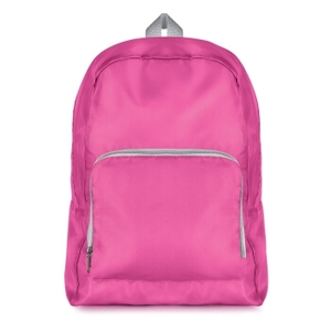 Foldable backpack with front pocket in 210D polyester. Adjustable shoulder strap in contrasted colour