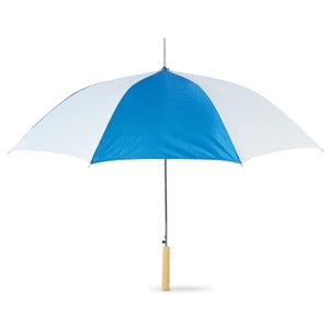 Bicolour umbrella with wooden grip. 8 panels. Opens automatically. 190T polyester.