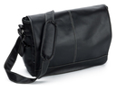 Document bag in matt finish PVC with white trimming and piping. Front pocket closed by horizontal zipper. Adjustable shoulder strap.