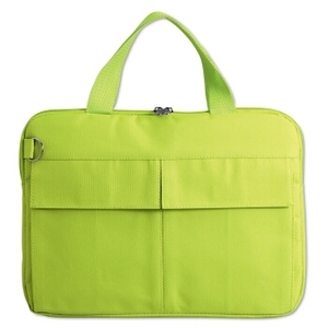 14 inch laptop bag in 600D polyester with 2 front pockets and handle straps.