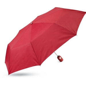 Automatic opening 3-fold umbrella in 190T polyester. Presents a matching colour pouch and handle in rubberized finish with logo plate. 8 panels.
