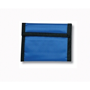 Bright coloured wallet with various compartments in 70D polyester with PVC backing.