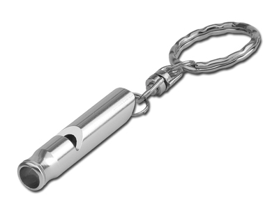 Produktname:Schluesselanhaenger aus Metall mit Pfeife.