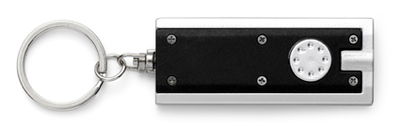 Schluesselanhaenger 'Key Largo' aus Kunststoff, inklusive LED-Lampe (weiss), Batterien und Schluesselkette, Farbe: Schwarz, Groesse: 6 x 2,4 x 0,6 cm