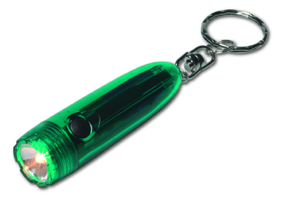 Schluesselanhaenger 'Orion' aus Kunststoff, inklusive Taschenlampe und Batterien, Farbe: Gruen, Groesse: Ø 2 x 12 cm