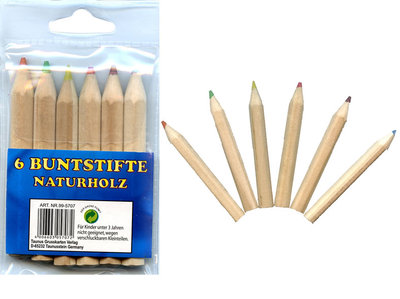 | Produktname: | Buntstifte dick 6er Pack, Länge: 8 cm, gespitzt |