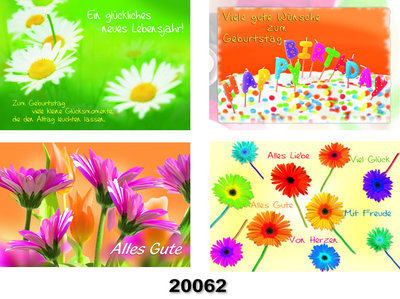 Geburtstags-Karte mit farbfrohen Fotomotiven Set II, Fachhandelskarten in 30er Box