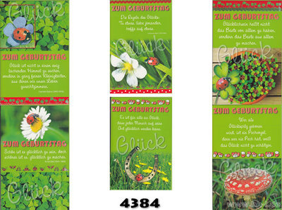 Geburtstags-Karte mit Glücksbringern Glitter, Fachhandelskarten im 30er Verkaufsdisplay