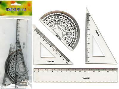 | Produktname: | Geometrie-Set 4tlg., 2x Dreieck, 1x Winkelmesser |